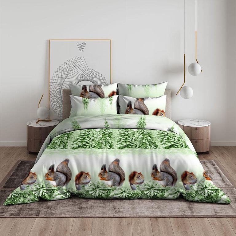 Постельное белье "Василиса" Белочки 2 Бязь (Евро)