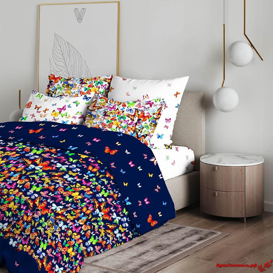Постельное белье "Василиса" Вихрь бабочек фиолетовый Бязь (2-спальный)