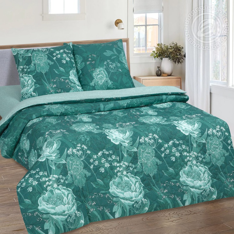 В комплект постельного белья «Зима-Лето АРТ» входит утепленный пододеяльник, простеганный со слоем наполнителя из синтепона на многоигольной машине.