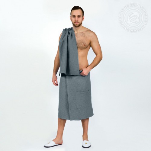 Набор для бани и сауны Мужской "АртПостель" Серый (Полотенце+Парео)