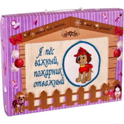 Подарочный набор полотенец "Дино-текс" Я пес важный Пожарник отважный (40*70см.-1шт.)
