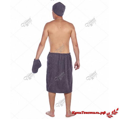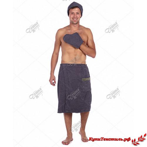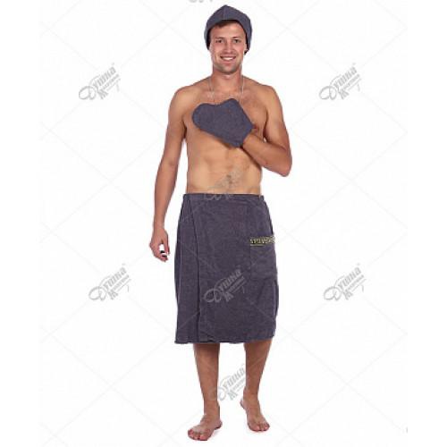 Комплект для сауны Мужской "Душка-Махрушка" Темно-Серый (Килт+Чалма+Варежка)
