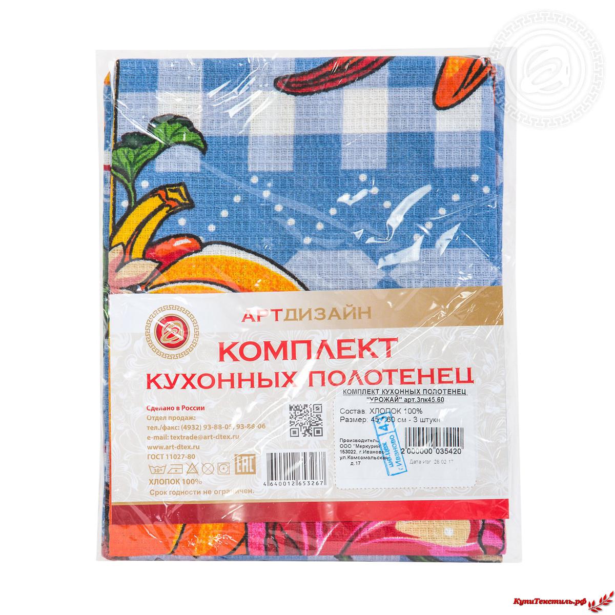 Комплект кухонных полотенец "АртПостель" Урожай (45*60-3шт.)