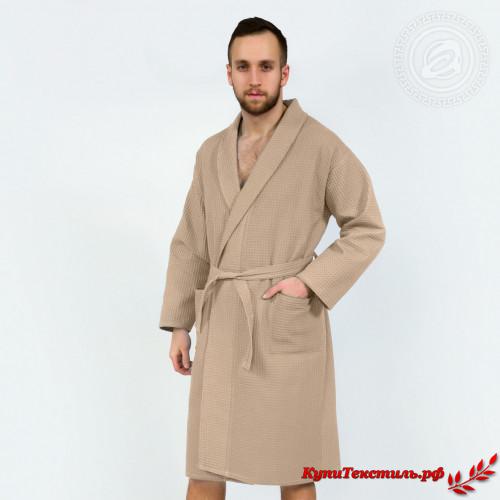 Халат женский "АртПостель" Банный с воротником цвет Бежевый (S/M)