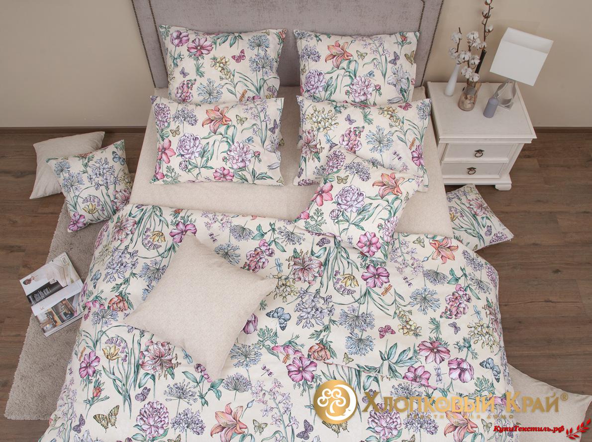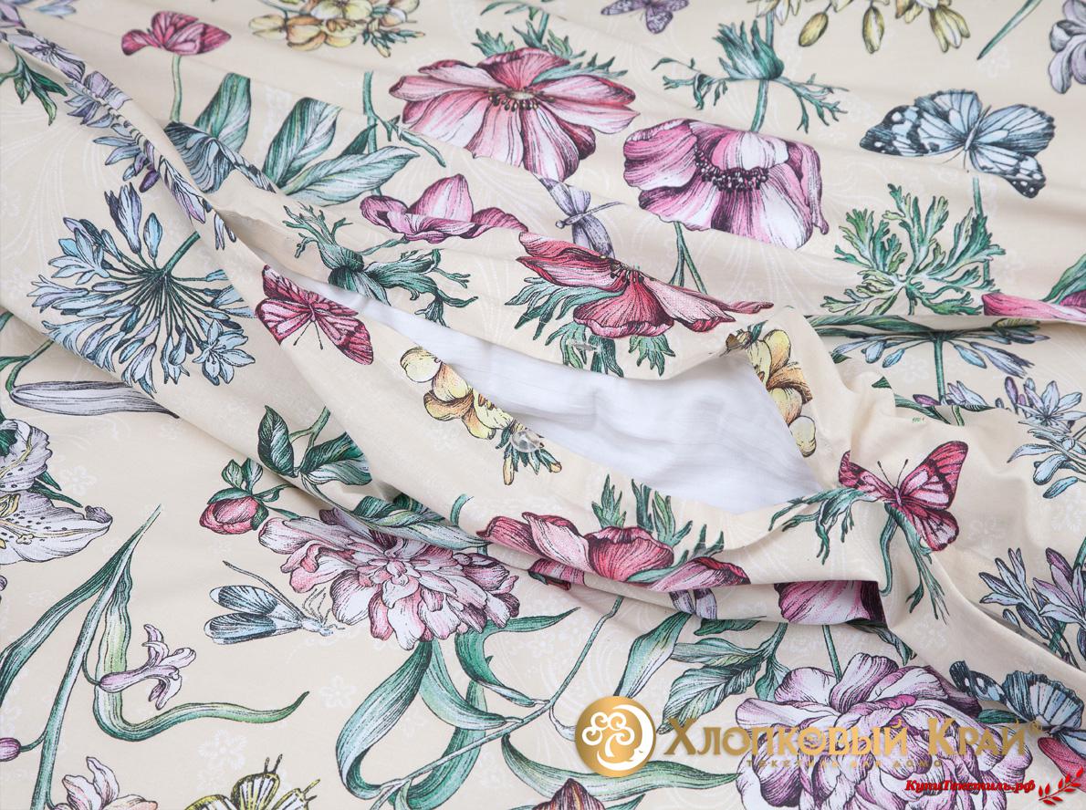 Постельное белье "Хлопковый Край" Флоретта беж Бязь-люкс (Евро)