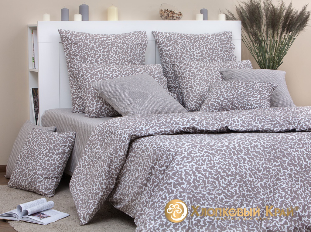 Постельное белье "Хлопковый Край" Линн кофе Бязь-люкс (Евро)