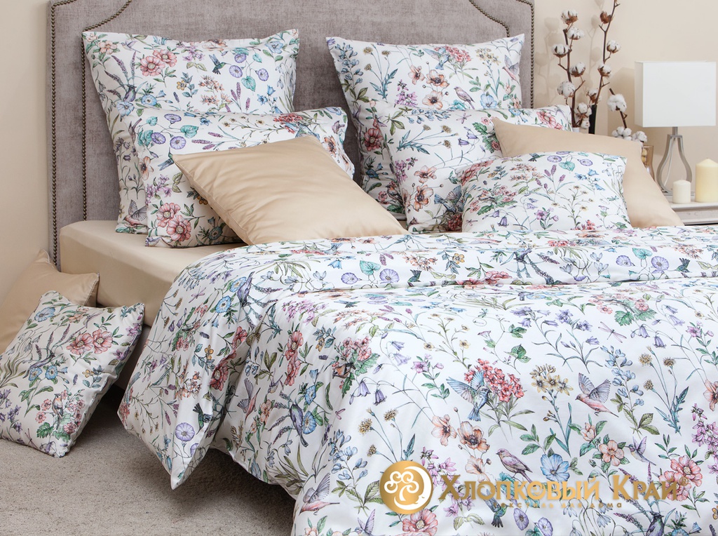 Постельное белье "Хлопковый Край" Аморетт беж Сатин (Дуэт (Семейный)