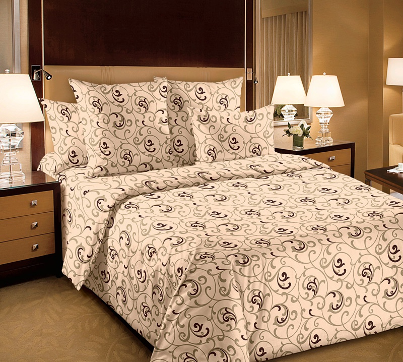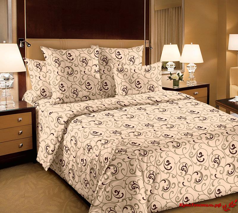 Постельное белье "Текс-Дизайн" Вензель бежевый Перкаль (Евро)