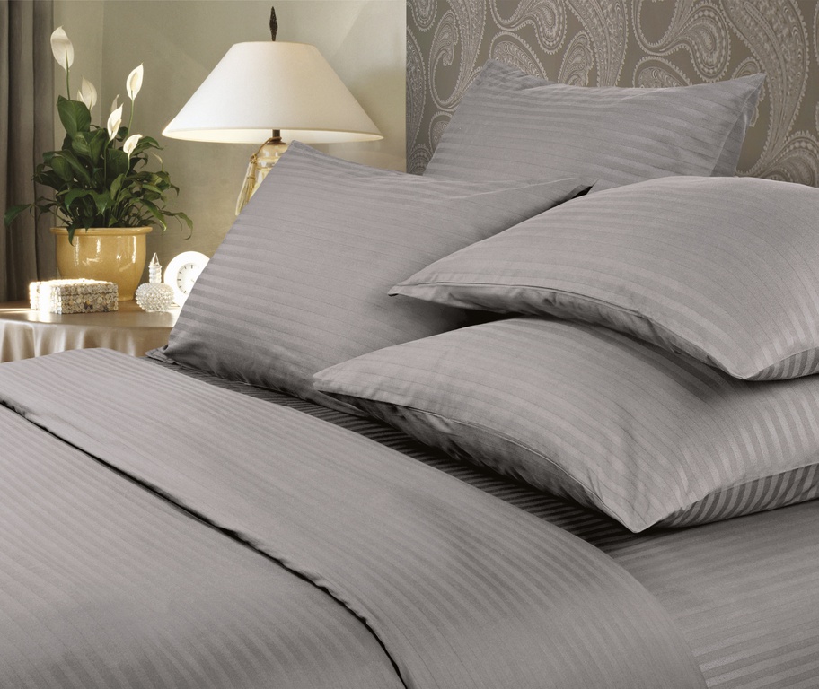 Основу коллекции постельного белья для гостиниц составляют отбелённые ткани, одной из которых является сатин - страйп (ткань с выделкой «в рубчик» полоса 1*1) – 100% хлопковая натуральная ткань, которая не вызывает аллергии.
