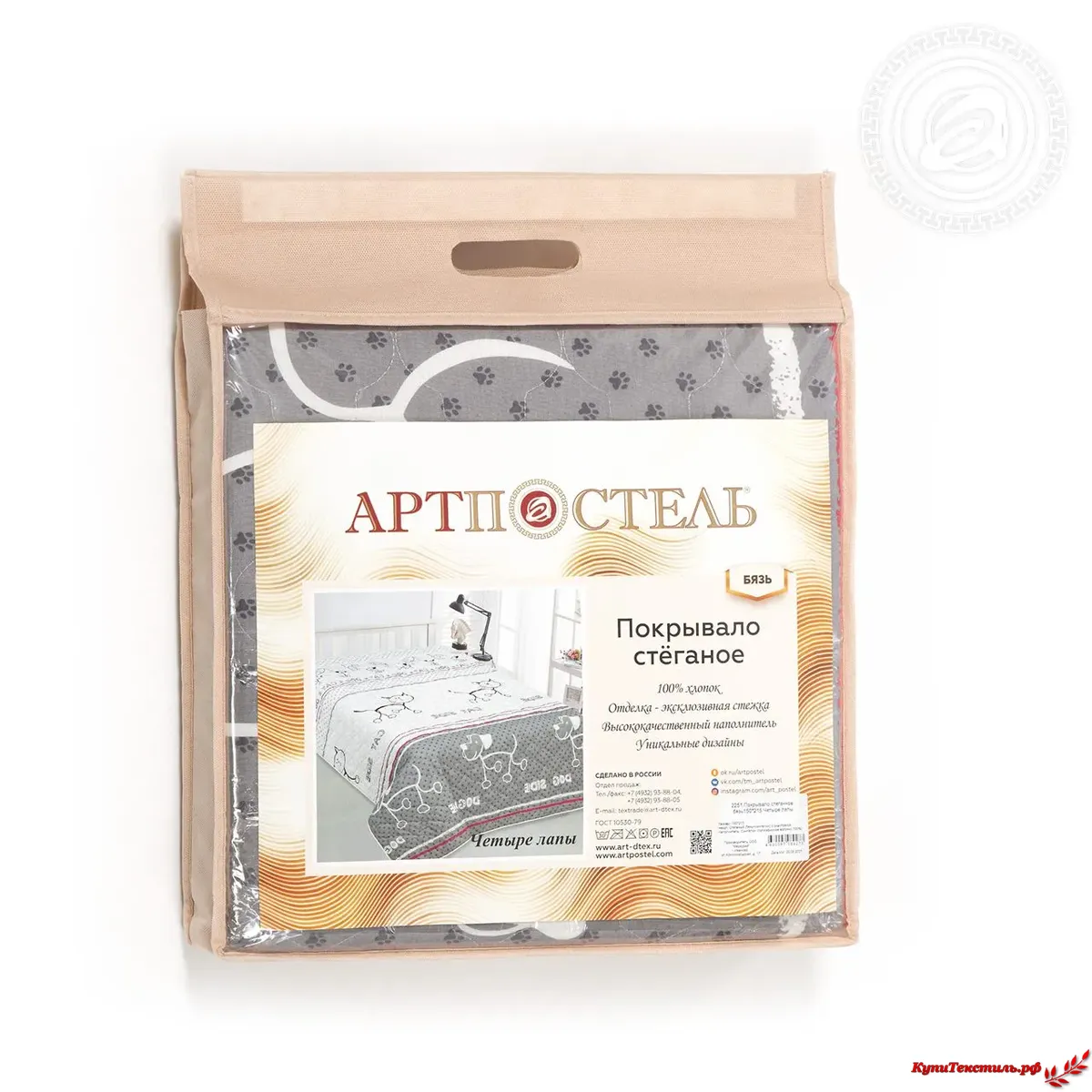 Покрывало АртПостель Четыре лапы стеганое Бязь, 150*215